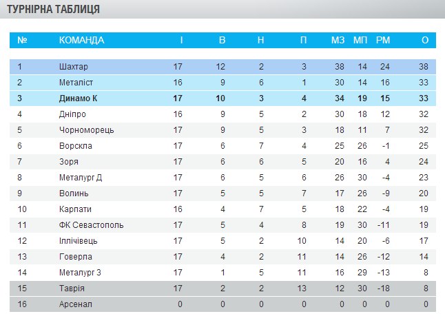 У зв’язку з офіційним виключенням київського «Арсенал» з УПЛ турнірна таблиця чемпіонату зазнала суттєвих змін.