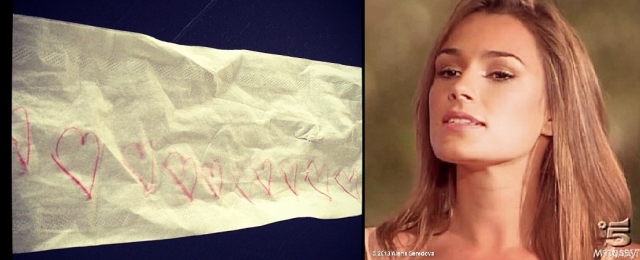 Цього тижня актриса відзначилася ще двома красномовними кадрами. Вона сфотографувала себе в телевізорі (мабуть для тих, хто ще досі сумнівається в тому, що її крутять на ТБ) і в романтичному пориві розмалювала туалетний папір для свого чоловіка. :) Шановні чоловіки, ваші половинки ще досі зустрічають вас тільки вечерею? То розкажіть їм про нові тенденції у світі селебретіс!!!