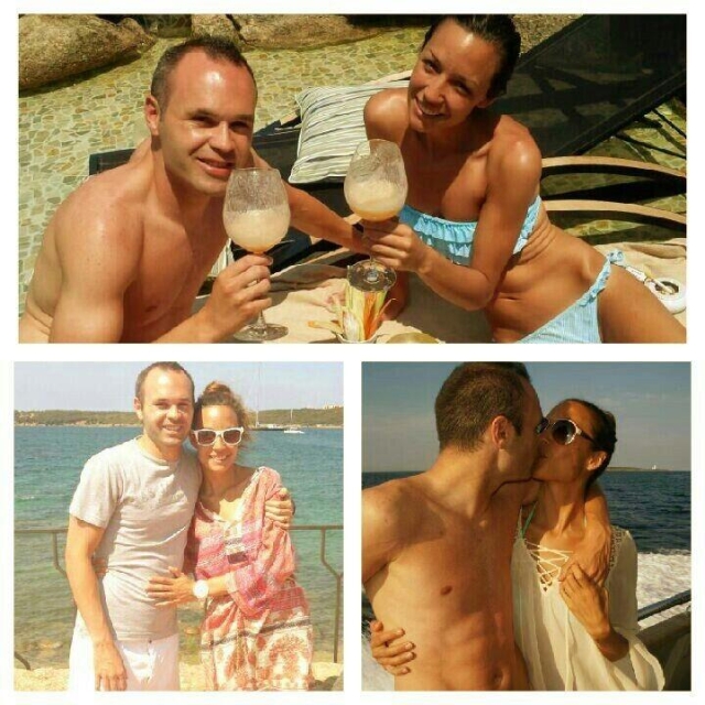 А ця парочка, здається, взагалі ніколи не розлучається. Таке враження, що медовий місяць Анни Ортіс і Андреса Іньєсти так і не закінчився. Нагадаю, ці голубки узаконили своє кохання ще в липні 2012-го.