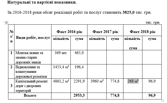 Так, якщо у 2017 році дорожники відремонтували 3960 м², то у 2018 році ця цифра склала тільки 268 м².