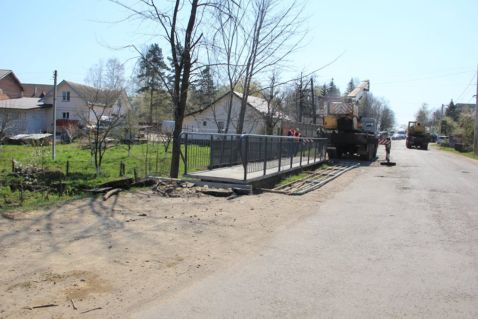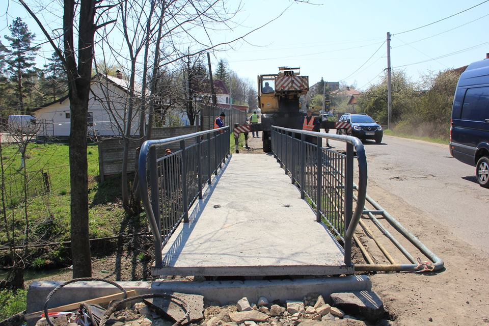 Треба додати, що підрядники заздалегідь провели демонтаж старого містка, розчистили територію, укріпили береги габіонами та встановили бетонні балки. Відтак змонтували новий залізобетонний каркас довжиною 12 метрів та вагою близько 16 тонн. На нетривалий час було перекрито рух транспорту на автодорозі та організовано об’їзд автомобілів іншими вулицями. Загалом роботи на об’єкті провели оперативно, пішохідний перехід змонтовано якісно.
