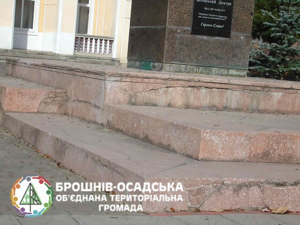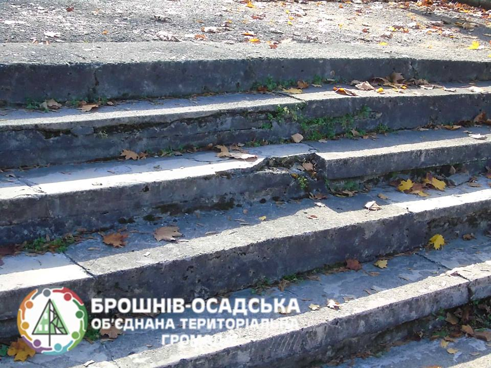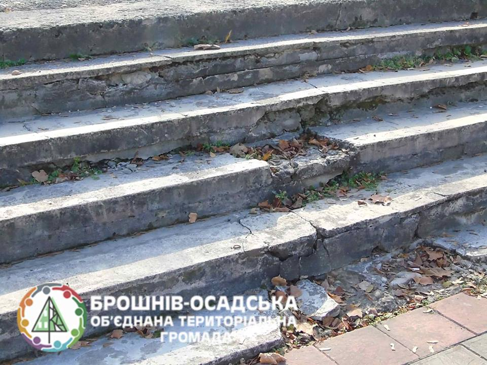 А сходи до центрального входу уже давно не були окрасою закладу культури. Час залишив на них глибокий відбиток: вони просіли і вкрилися глибокими тріщинами. Обсяг роботи надзвичайно великий.