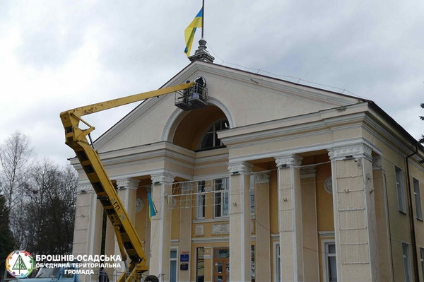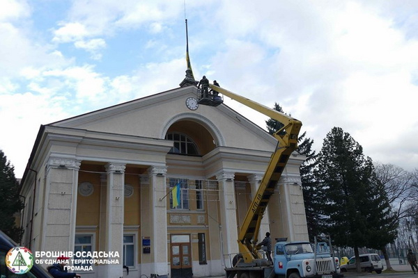 У Брошнів-Осаді на фасаді Народного дому встановили унікальний годинник, створений на замовлення.