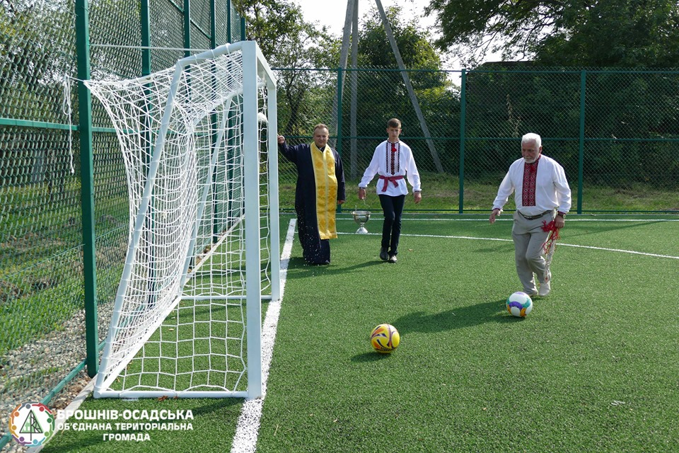 В селі Креховичі Брошнів-Осадської ОТГ у День Незалежності відкрили та освятили новий спортивний майданчик зі штучним покриттям.