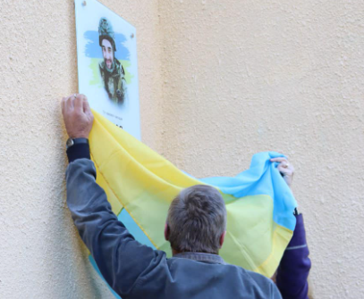 На фасаді Долинської дитячої художньої школи відкрили та освятили меморіальну дошку загиблому Тарасу Лавріву.
