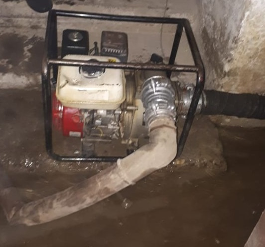За допомогою мотопомпи рятувальники відкачали 50 м3 води із підвалу.