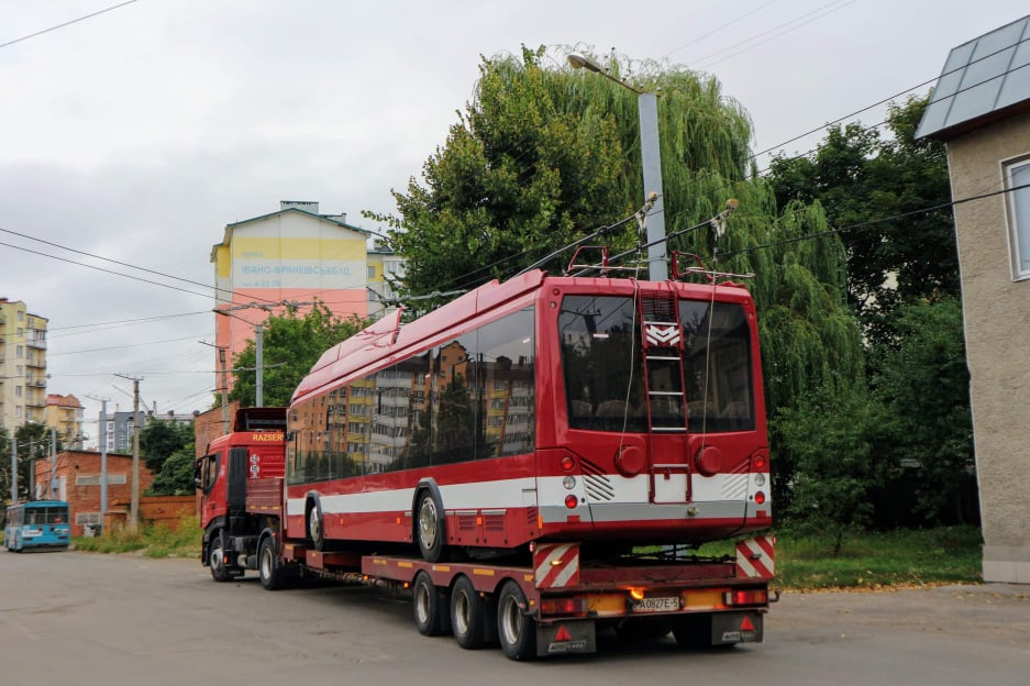 Очікуване поповнення електротранспорту в Івано-Франківську. Завершилась перша поставка нових тролейбусів, закуплених у співпраці з ЄБРР та Фондом чистих технологій. На КП «Електроавтотранс» повністю надійшла перша партія «рогатих» білоруського виробництва – 7 штук.