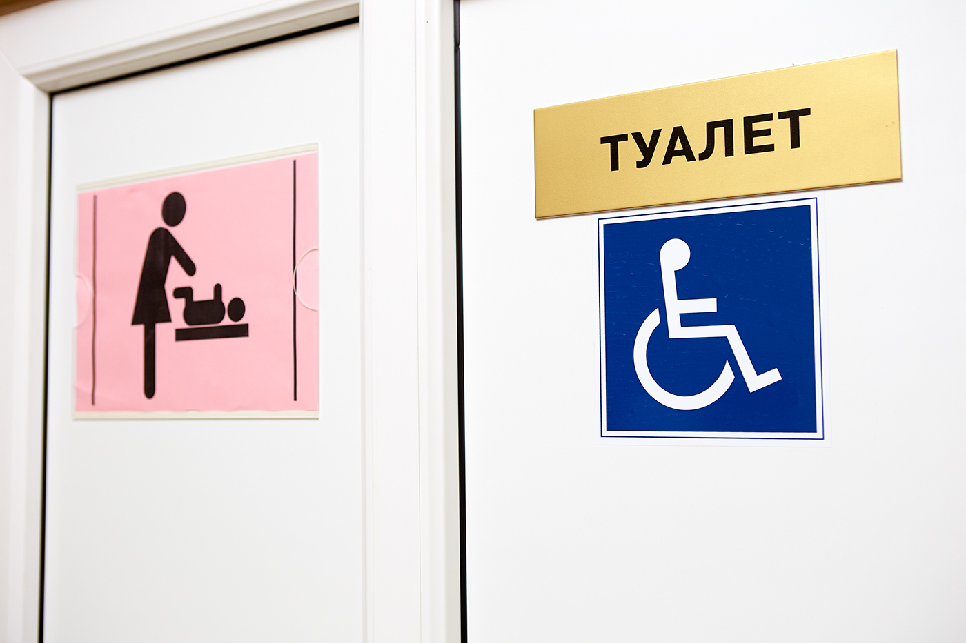 Вбиральня простора, повністю адаптована для доступності людей з інвалідністю. Крім того, подбали і про мамусь з немовлятами, адже вони теж не мали належно місця у разі неочікуваних ситуацій.