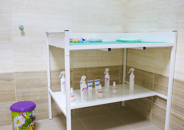 У вбиральні поставили пеленальний столик, наповнили його всіма потрібними матеріалами для матері і дитини, які колектив поліклініки просить використовувати ощадно та залишати для інших.