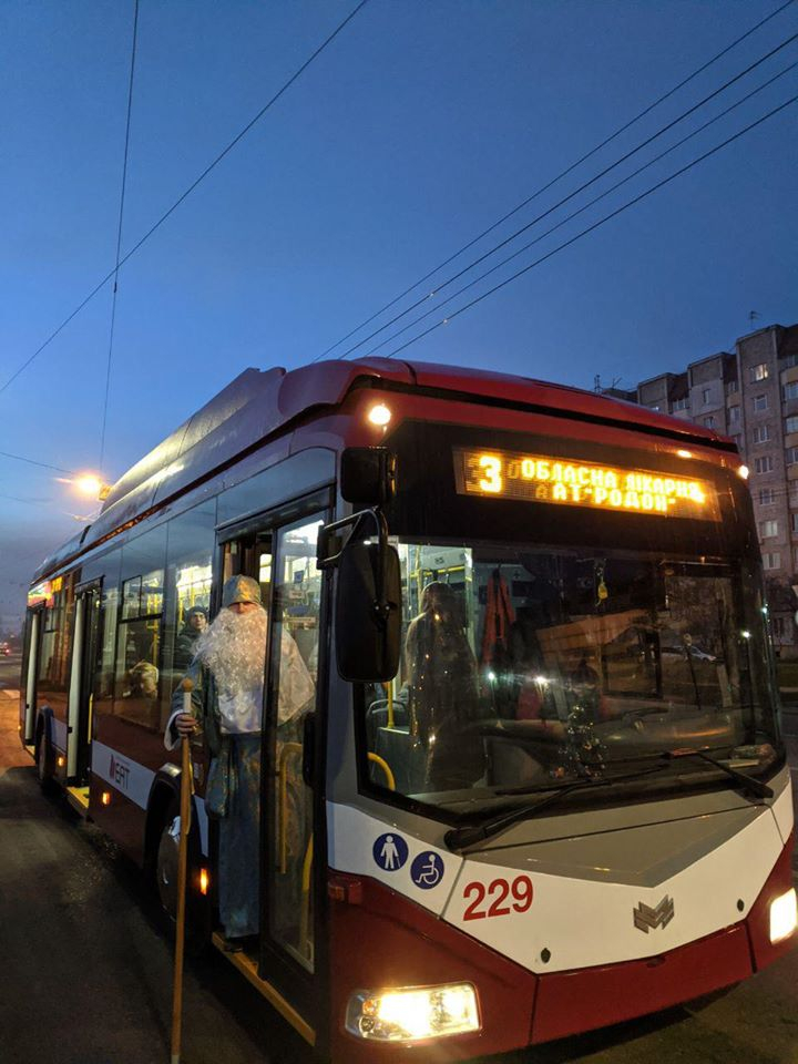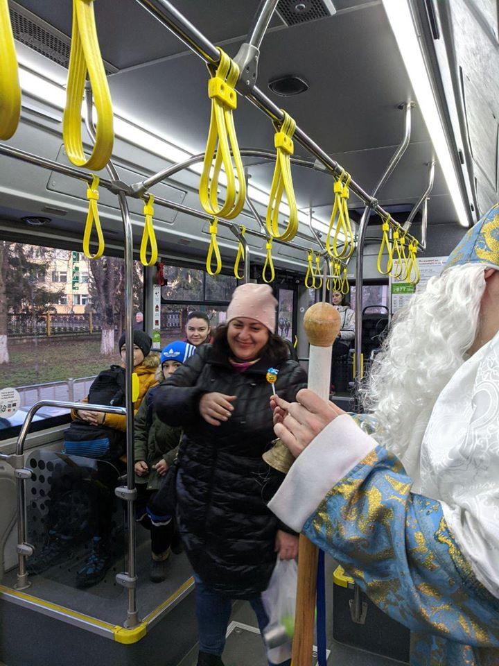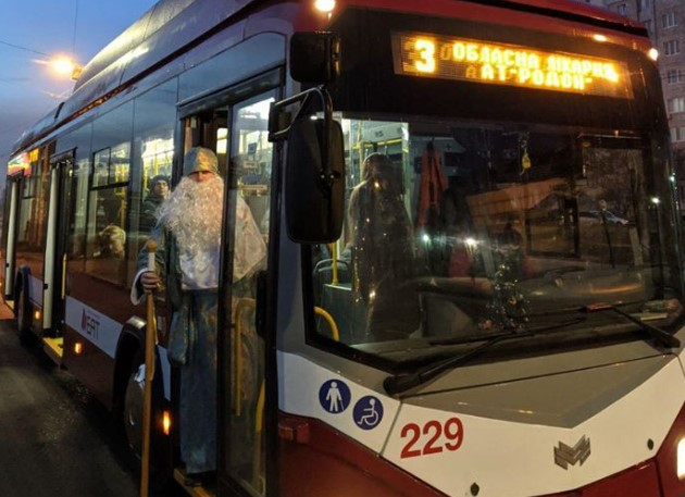У франківських тролейбусах Миколай дарував пасажирам святковий настрій та цукерки (ФОТО)