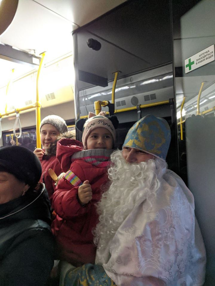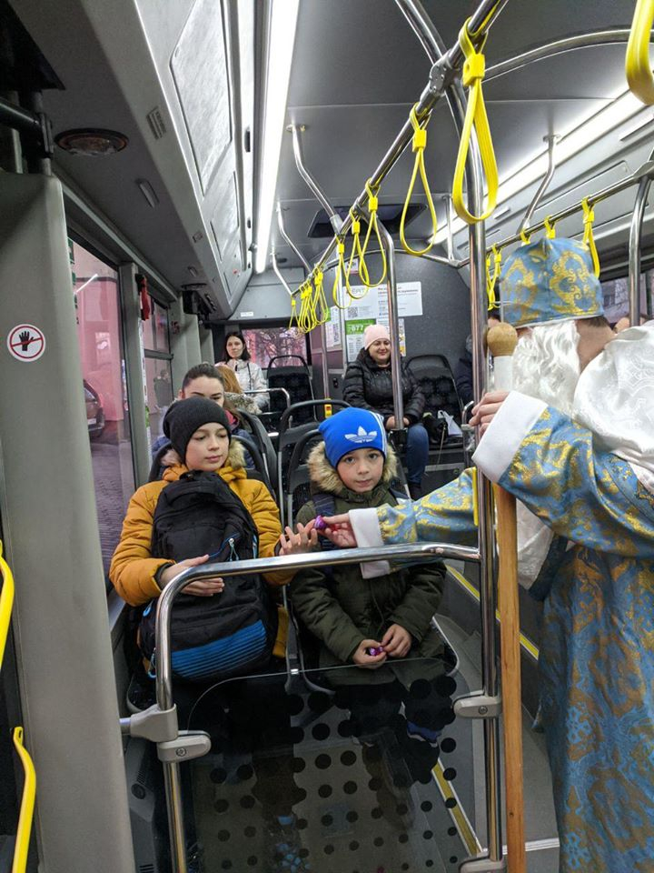 "Ой хто, хто Миколая любить…", а люблять його всі. Адже у цей святковий день до пасажирів комунального транспорту по традиції, повертаючись після нічного дарування подарунків завітав Святий Миколай. Йому були раді всі, і дорослі, і діти", - йдеться у дописі.