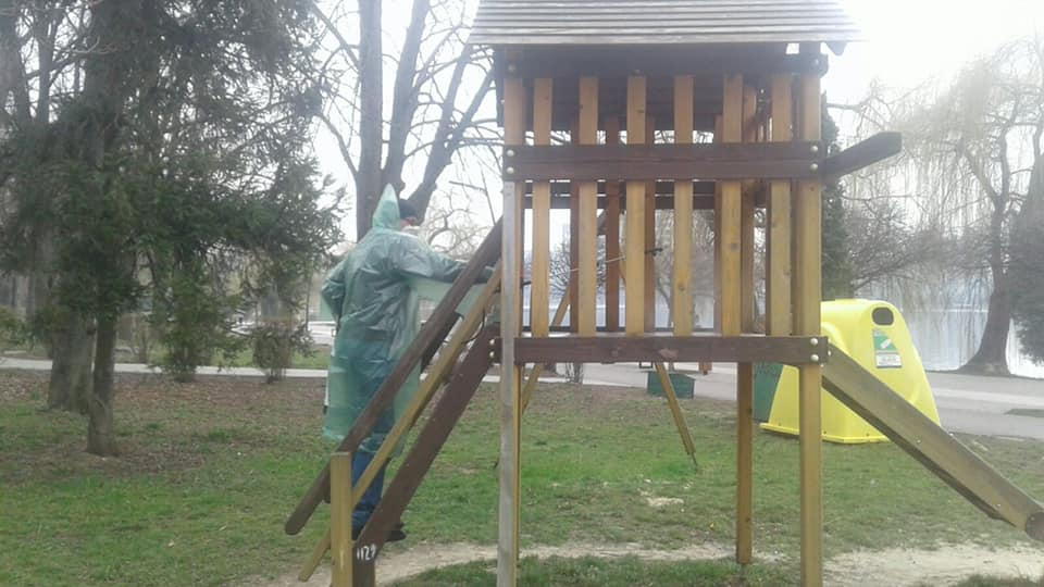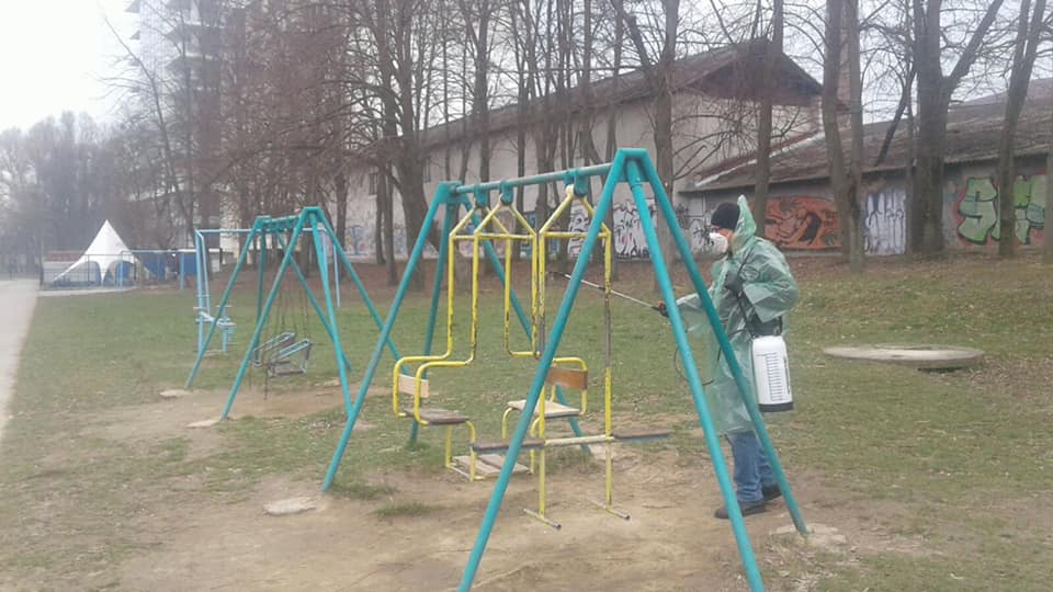 У франківському парку дезінфікують лавки та гойдалки (ФОТО)