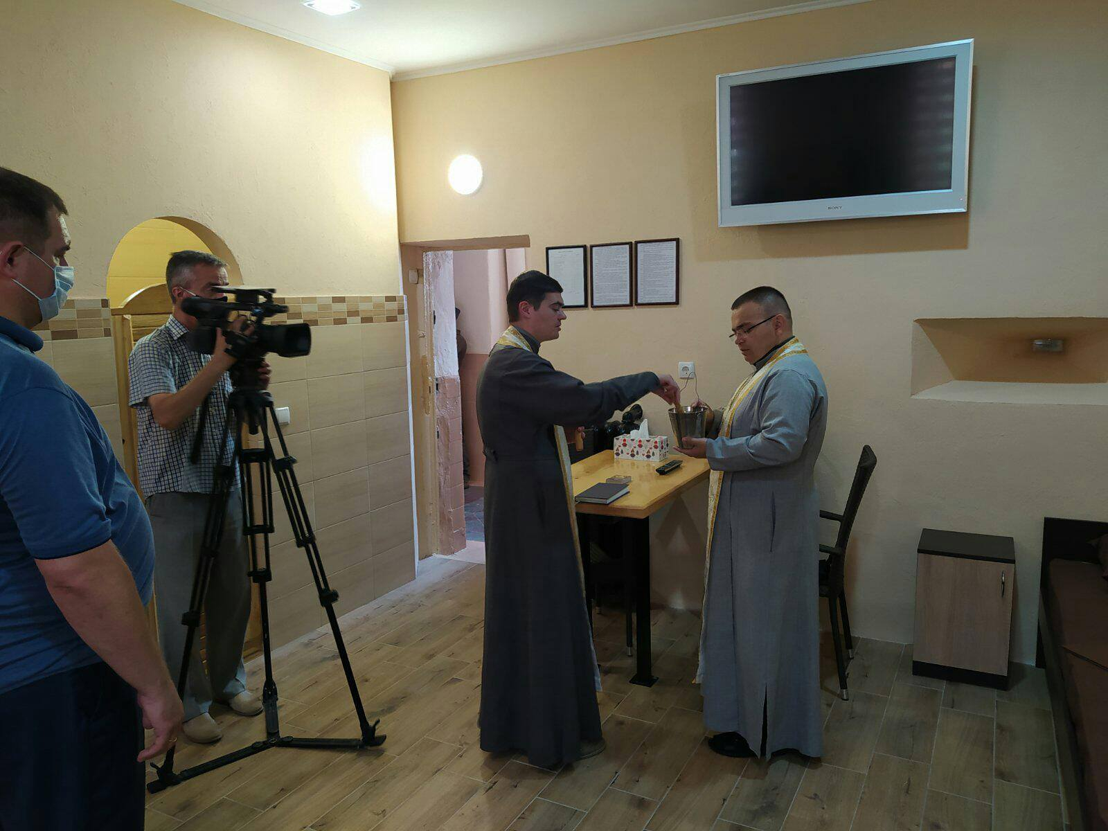 На запрошення керівництва установи в заході взяли участь в'язничні душпастирі та отці храму Зіслання Святого Духа УГКЦ о.Арсен Панчак та о.Василь Сливоцький, які поблагословили кімнату освяченою водою, інформує Фіртка з посиланням на УГКЦ.