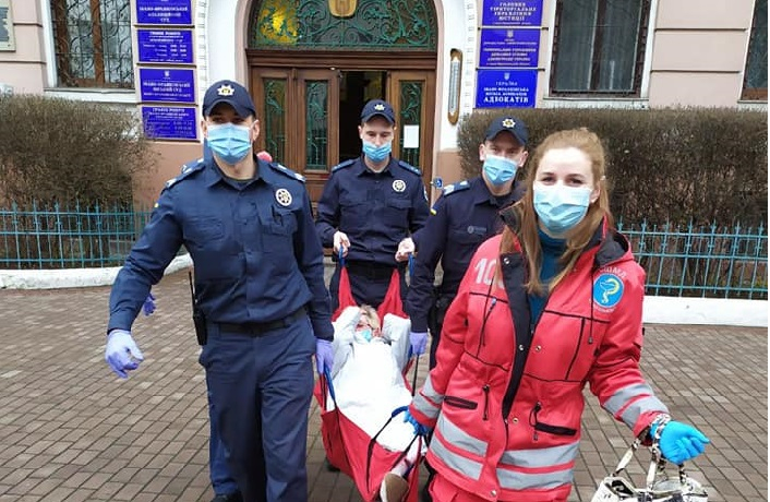 Вони здійснили супровід та надали допомогу під час перенесення жінки до карети швидкої для подальшої госпіталізації.