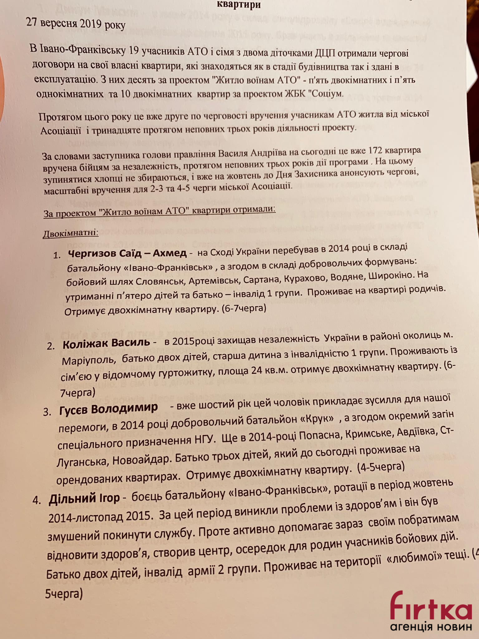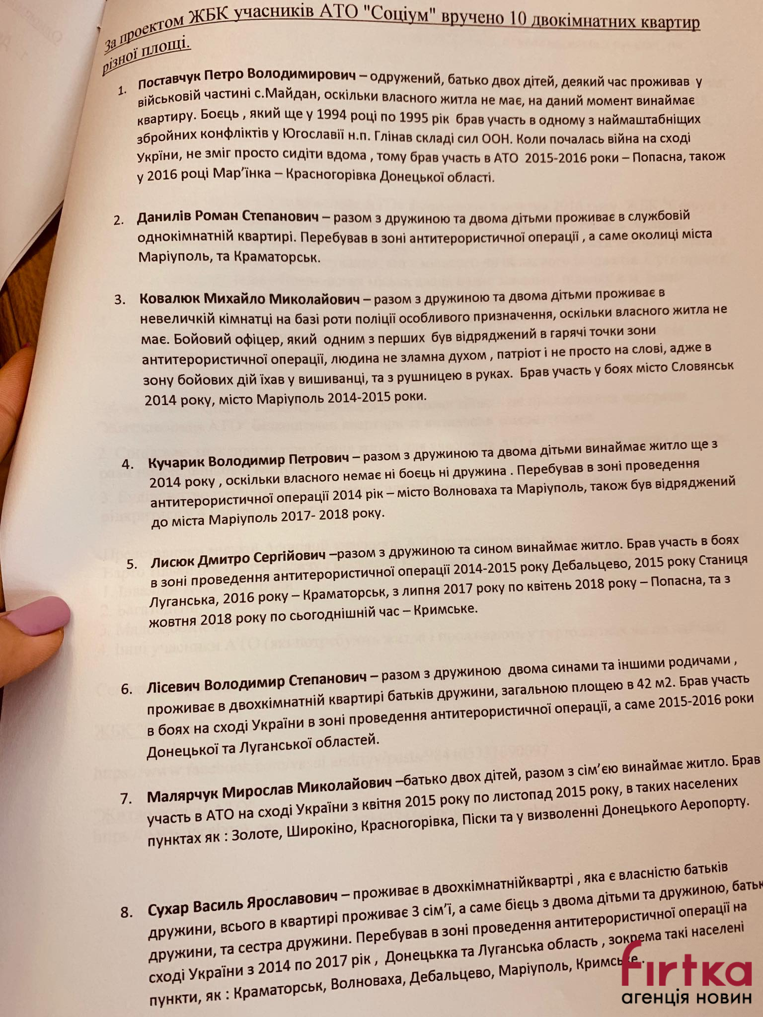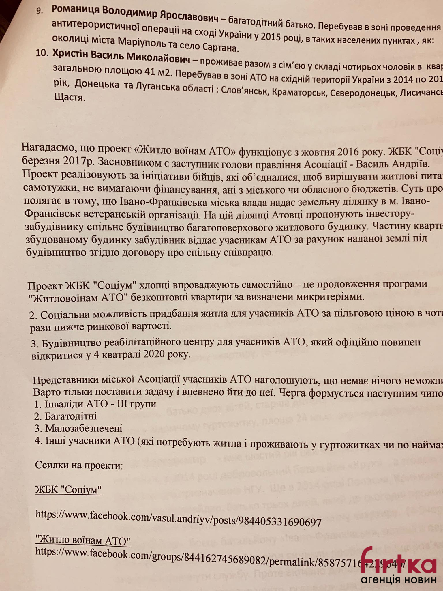 "Вручаємо сьогодні 20 квартир: 10 по проекту "Соціум" і 10 по проекту "Житло для воїнів АТО". Зокрема, сьогодні вручено квартиру сім'ї, у якої двоє діток хворі на ДЦП. Загалом за час дії проєкту - 2,5 роки, вже вручено 172 квартири. Ще 346 людей потребують житла і стоять на квартирній черзі", - каже Андріїв.