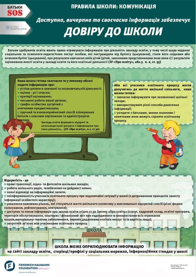 "Буває, що батьки не знають всі свої права чи/та права дітей, тому часто звертаються до нас за консультацією. Ситуації бувають різні... Ми прагнемо, щоб учасники освітнього процесу були проінформовані та обізнані. Надіємось, що плакати розмістять у кожній школі нашого міста на видному місці, і це стане ще одним кроком на шляху до побудови довірливих стосунків між батьками та школою", - розповіла керівник ГО «Мами Прикарпаття Мар’яна Вершиніна.