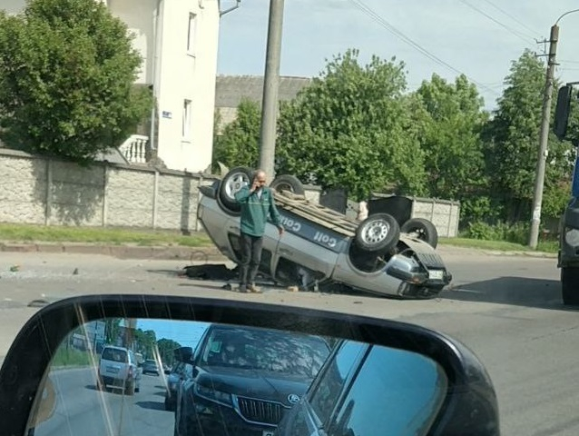 Від зіткнення автомобіль перекинувся на дах.