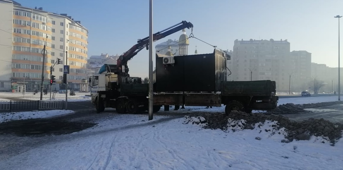 В ніч з суботи на неділю на Миколайчука, 2 поруч ТЦ" Арсен" невідомі встановили тимчасову споруду без дозвільних документів.