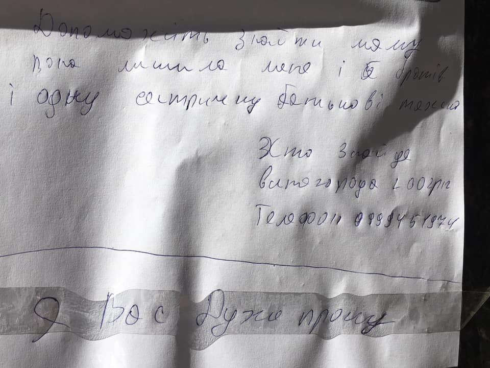 Діти обіцяють винагороду в 200 гривень за розшук матері. В оголошенні зазначено номер телефону та прохання: "Дуже прошу".