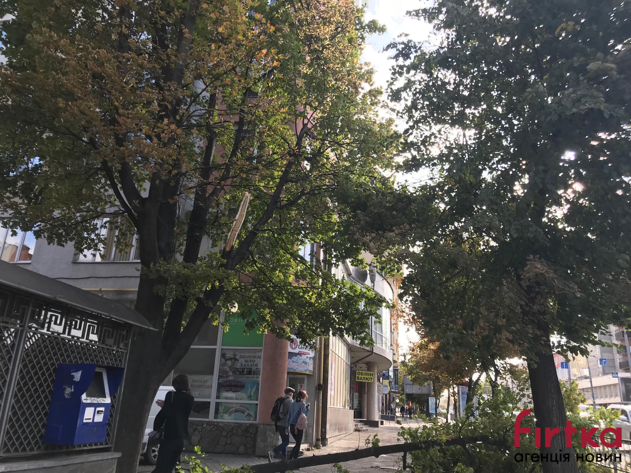 Сьогодні, 18 вересня, сильний вітер повалив гілку з дерева в Івано-Франківську.