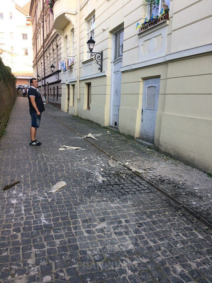 У Франківську на голови перехожим падає штукатурка з будинків (фото)