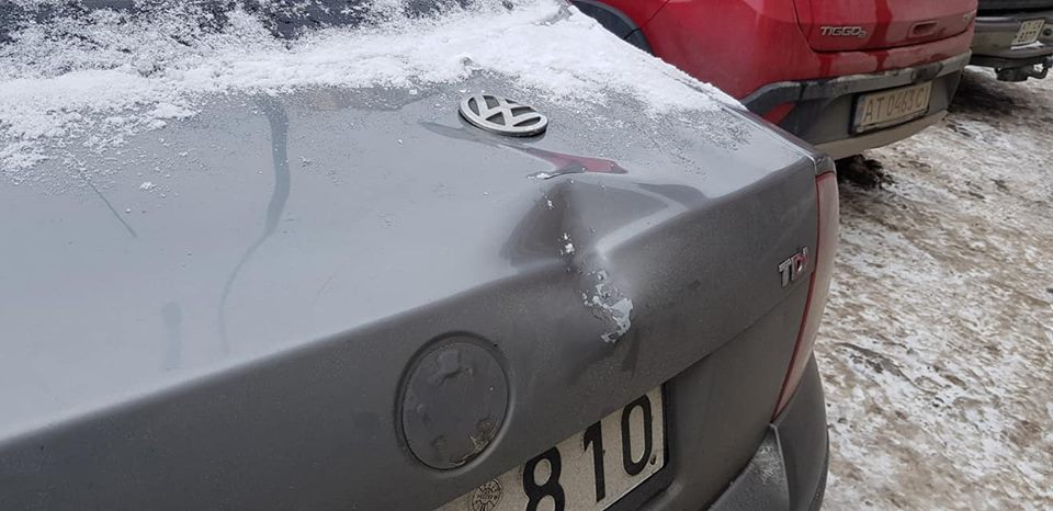 За словами чоловіка лід впав з даху багатоповерхівки. Автівка залишилась без знаку та з добрячою вм'ятиною, пише Фіртка.