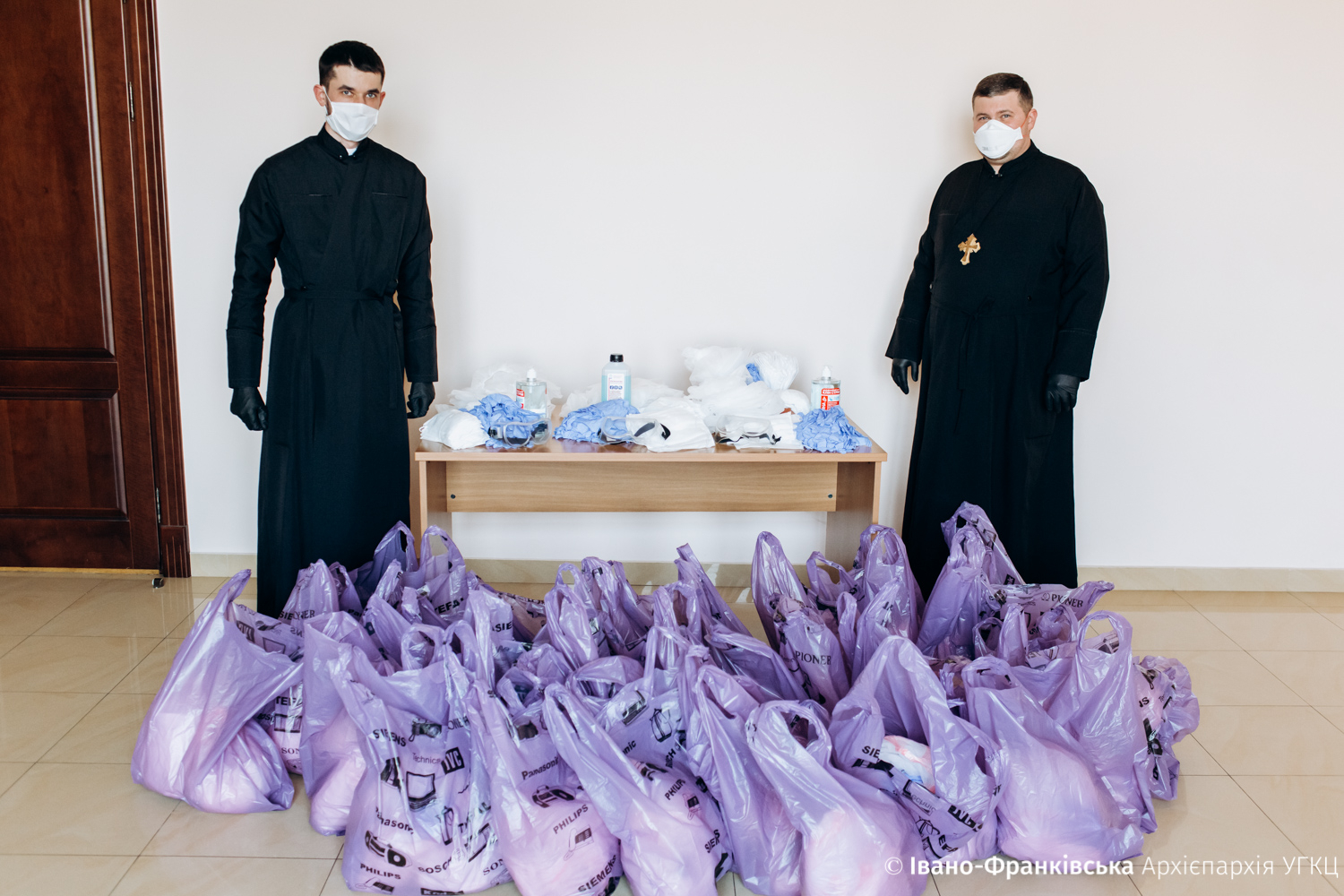 Вчора, 6 квітня, в рамках роботи Архієпархіального координаційного антикризового центру з благословення Митрополита Володимира Війтишина медичним капеланам Івано-Франківської Архієпархії передали 35 комплектів засобів індивідуального захисту від вірусу (захисні маски, окуляри, бахіли, медичні рукавиці, дезінфікуючі розчини та інші необхідні речі).