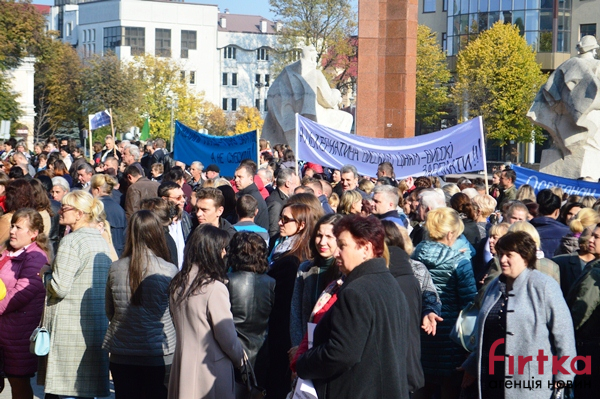 Рада профспілок Івано-Франківської обалсті організувала мітинг під обласною державною адміністрацією, пише Фіртка.