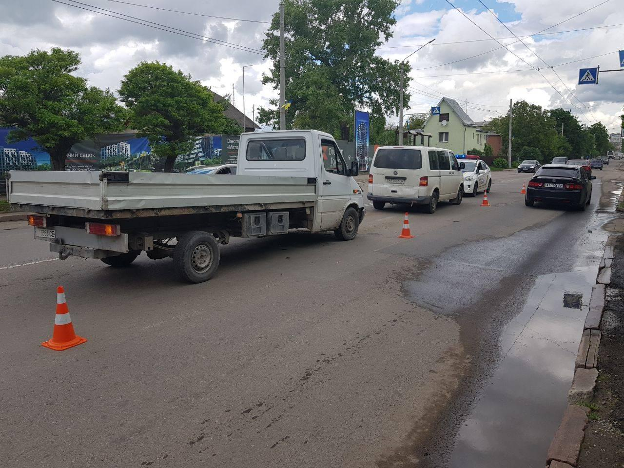 "Водій, керуючи вантажним автомобілем Мерседес Бенц, рухався вулицею Бандери та, проявивши неуважність при перестроюванні, не помітив попереду автомобіль Фольксваген Транспортер і здійснив зіткнення, - розповідає речниця патрульної поліції Івано-Франківщини Христина Мриглід. - Внаслідок зіткнення 51-річним водієм Фольксвагена отримано травми. Попередній діагноз - забій та струс головного мозку".