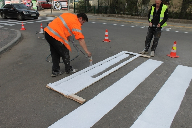 Наносити розмітку почали наприкінці квітня і продовжать, коли дозволятимуть погодні умови.