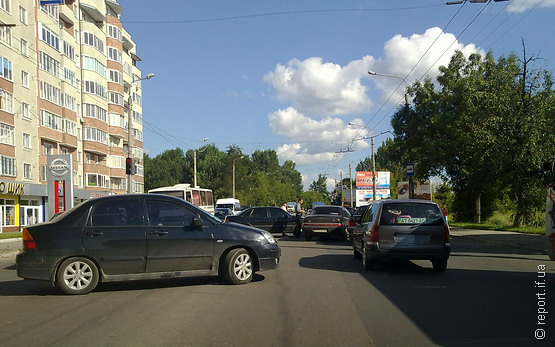 Вчора у пообідню пору по вулиці Галицькій в Івано-Франківську, неподалік повороту на вул. Целевича, сталася ДТП. Унаслідок зіткнення двох легкових авто проїзд по вулиці був деякий час утруднений.