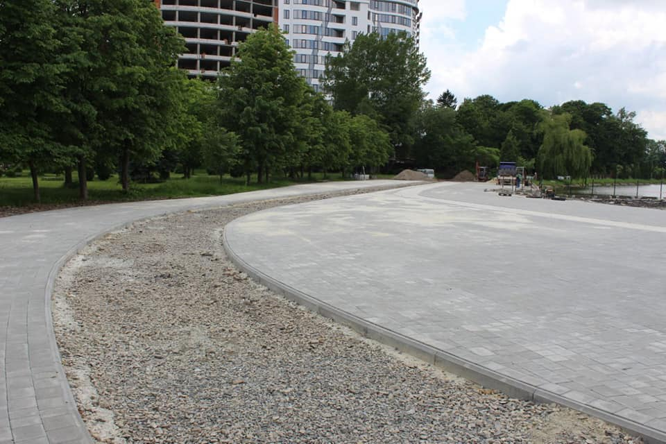 Паралельно активно тривають роботи з облаштування пішохідної зони, бігової та велодоріжки.