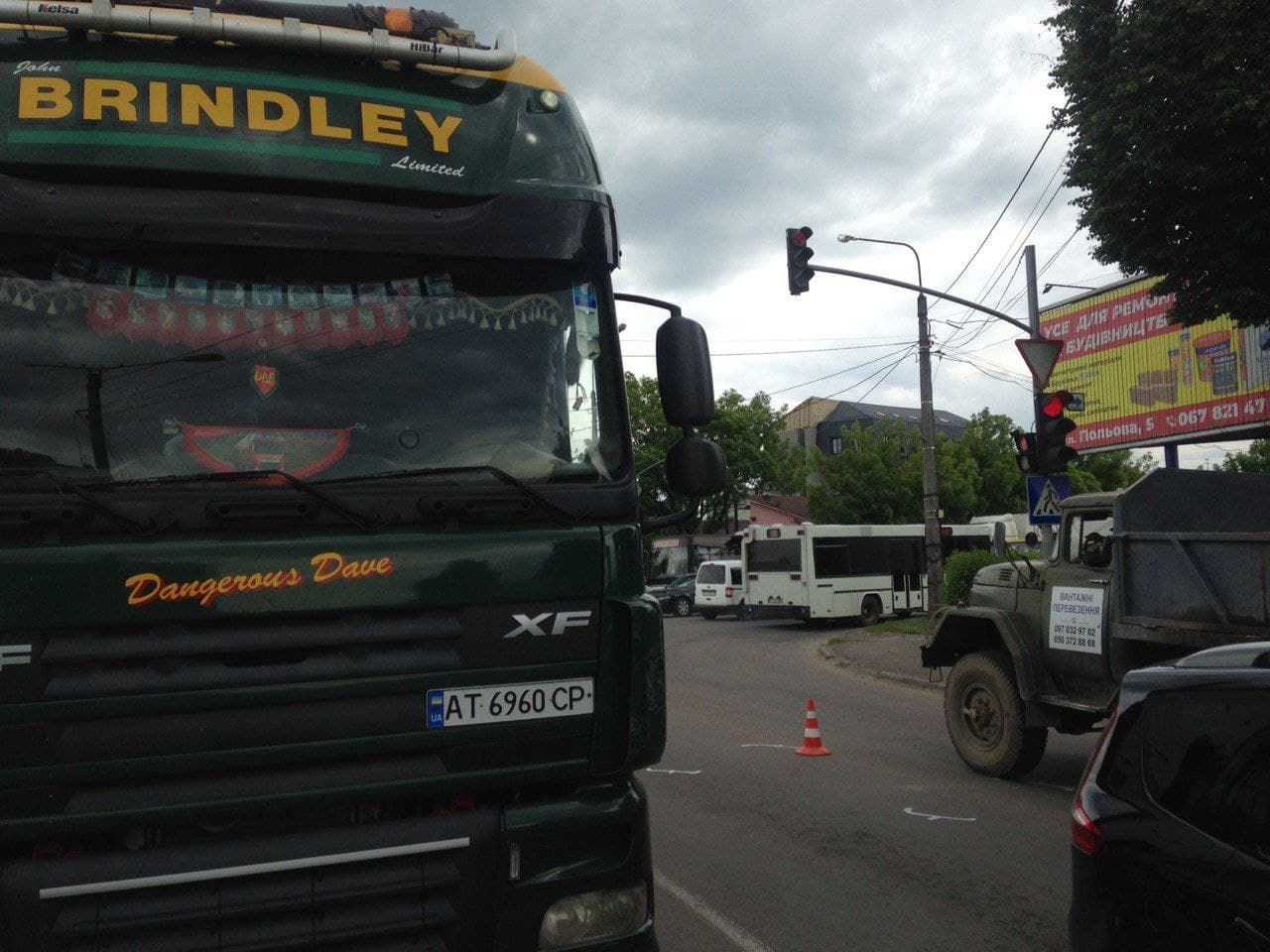 Зокрема, на перехресті Коновальця-Петлюри, 40-річний водій керуючи автомобілем "DAF FTG XF 105" з причепом "Schwarzmuller SPa-3E", який з його слів здійснював поворот з вул. Коновальця на вул. С. Петлюри на зелену секцію світлофора, здійснив наїзд на пішохода (жінку близько 60 р.) по вул. С. Петлюри.