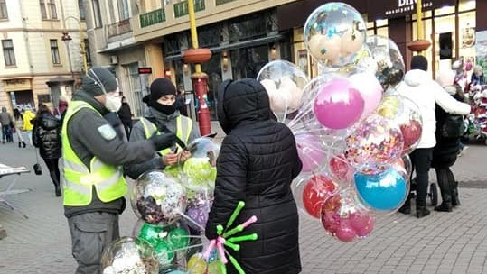 В Івано-Франківську за останній місяць у центрі міста з'являється все більше осіб, які торгують повітряними кульками з рук без будь-яких дозвільних документів.
