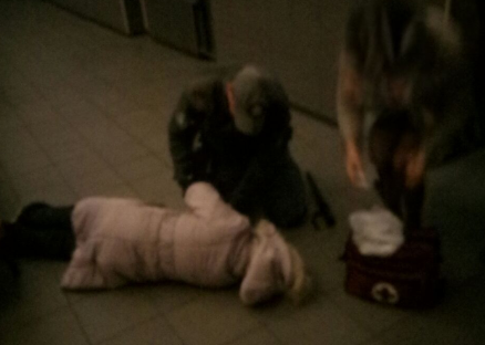 Зважаючи на стан потерпілої, працівники варти допомогли доправити потерпілу в карету швидкої для подальшої госпіталізації.