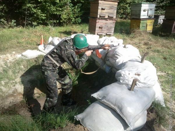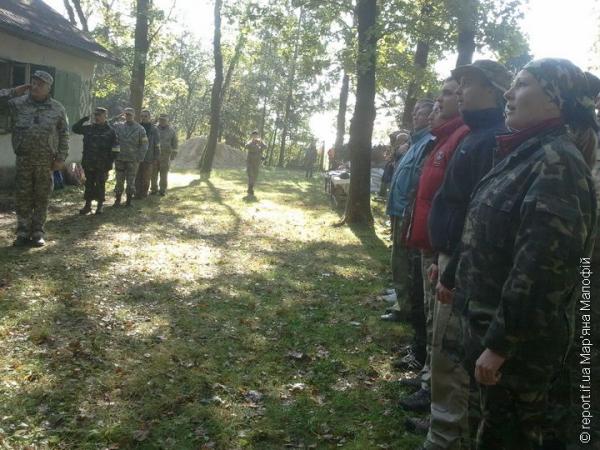 Щосуботи на полігоні відбувається військовий вишкіл із тактики, рукопашного бою та надання першої медичної допомоги. Десята ранку — збір двох загонів (Франківськ і Коломия), шикування, вітальне слово командира, підняття прапору, державний гімн. Далі ділимось на чотири групи по 6-7 людей — і вперед. Тактичну підготовку добровольців проводить заступник командира з’єднання майор Богдан Шендерецький. Навчає, як розбирати та збирати автомат, заряджати магазин. Потім вчимося поводитися з гранатами, ставити й розміновувати «розтяжки» — на Донбасі такого зараз багато. Заступник командира франківського загону НОП Станіслав Шмат учив рукопашному бою.