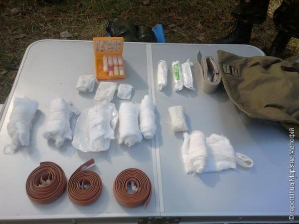 Як накласти марлеву пов’язку на різні частини тіла, накласти джгут — собі або іншому пораненому, як правильно використовувати індивідуальну аптечку тощо. Також учасники вишколу разом із заступником командира з’єднання Василем Іваночко, у бронежилетах, касках та з автоматами, метали навчальні гранати. На перший раз ця справа виявилася дуже непростою. Та, певно, найважче — смуга перешкод.