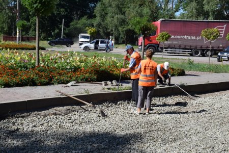 На вулиці Національної гвардії 18-20, у дворах, проводять підготовчі роботи до брукування доріжок.