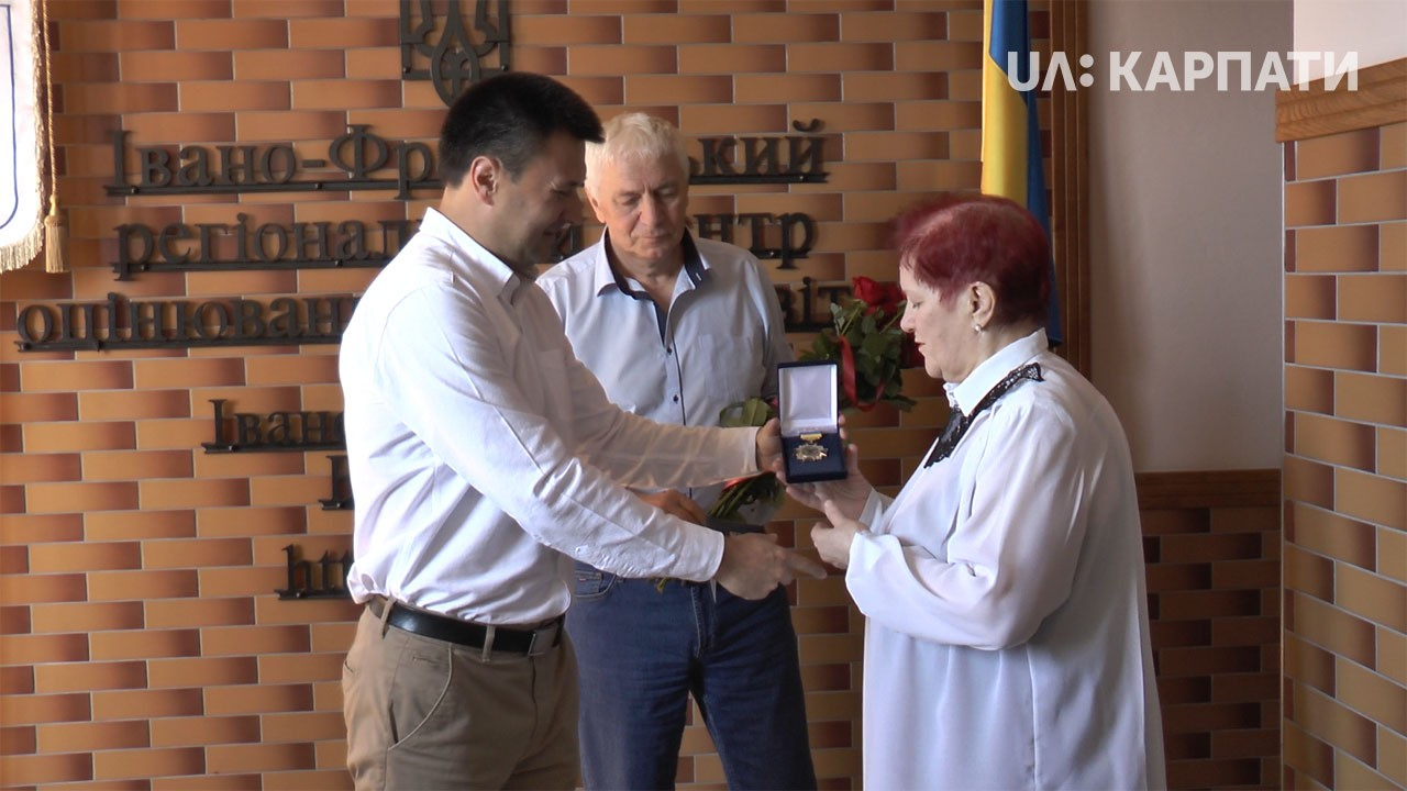 Медаллю «За заслуги перед Прикарпаттям» нагородили сьогодні Зіновію Павлович в Івано-Франківському регіональному центрі оцінювання якості освіти.