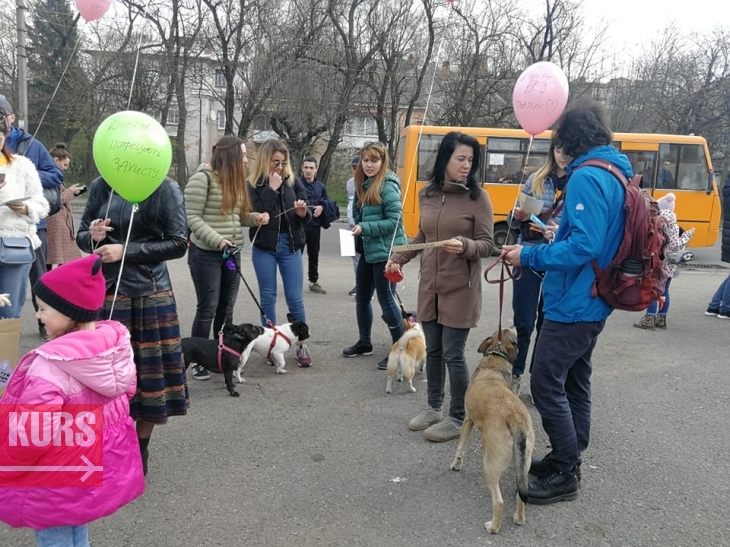 На акцію прийшло понад 50 людей. Дехто взяв із собою домашніх улюбленців. До них вийшли представники цирку.