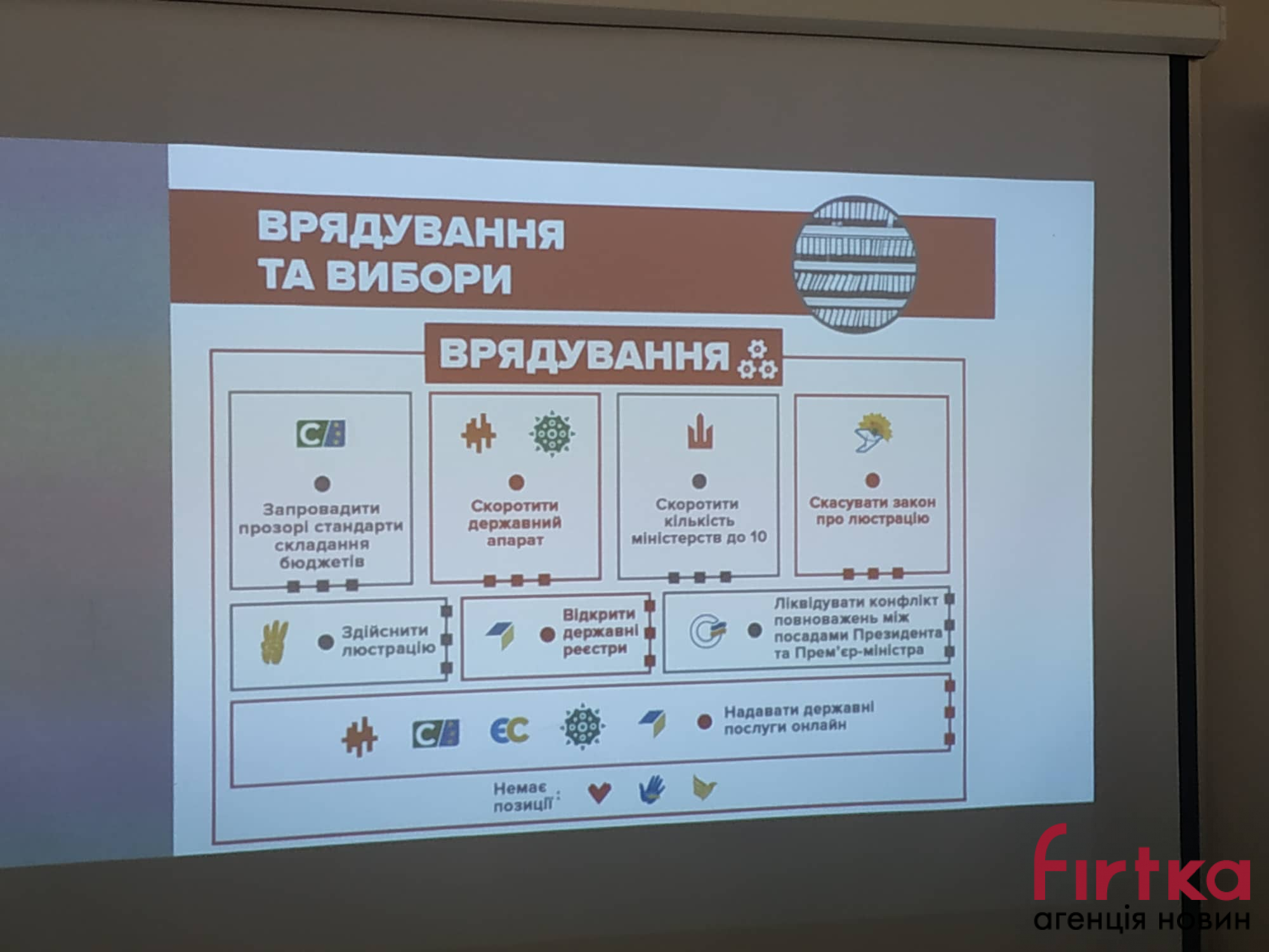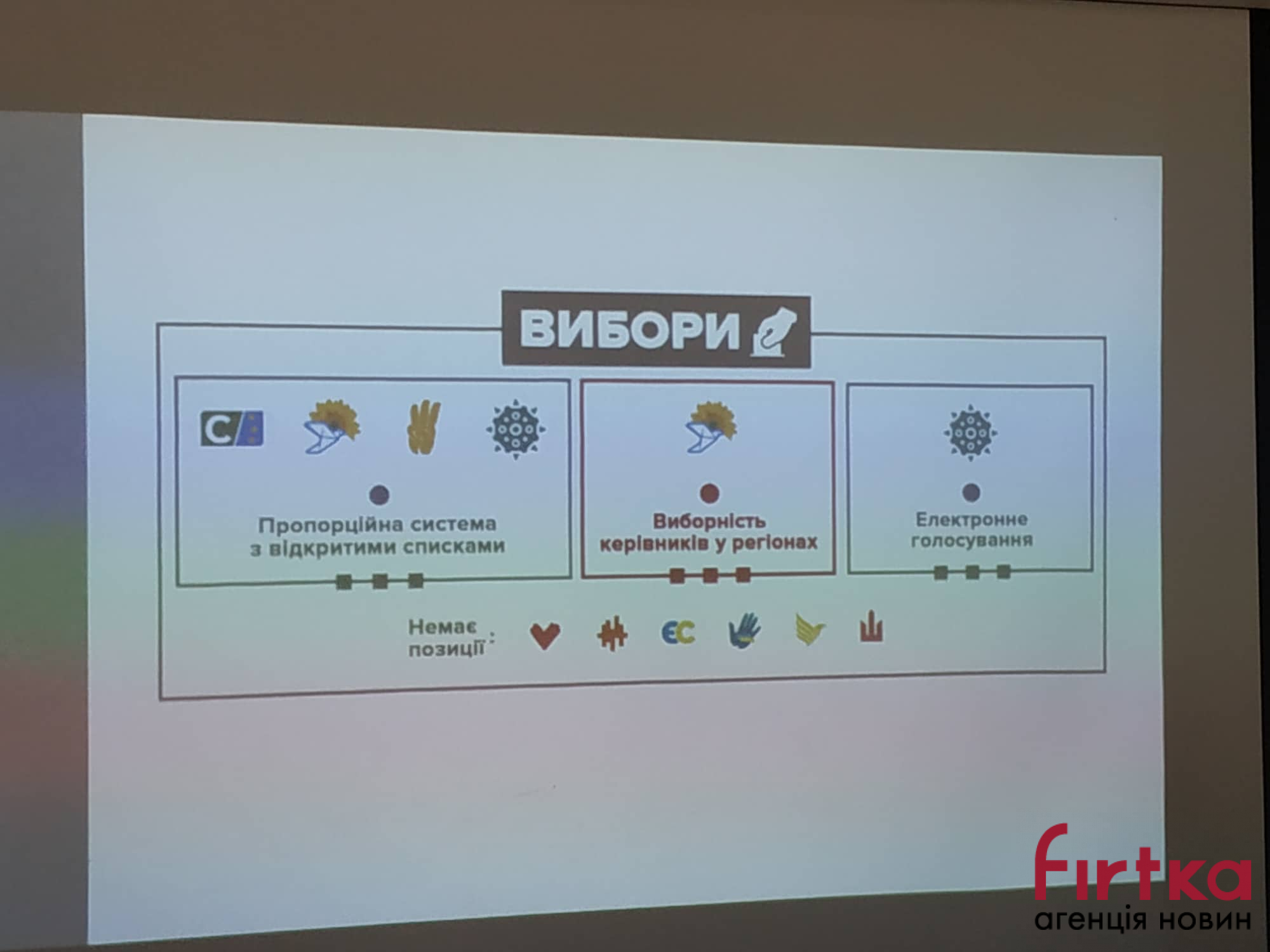 "Фішкою" однорічної парламентської кампанії є надання електронних послуг. Щодо виборів декілька партій говорять про пропорційну систему за відкритими списками, не мають позиції щодо виборів у Батьківщині, ЄС та партії Ляшка Щоб знайти інструмент необхідно зайти на сайт Української правди, де розміщене тестування.