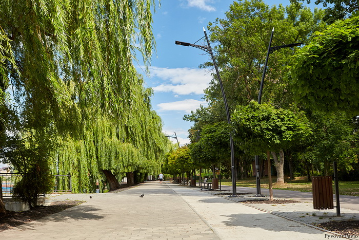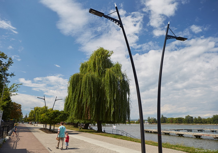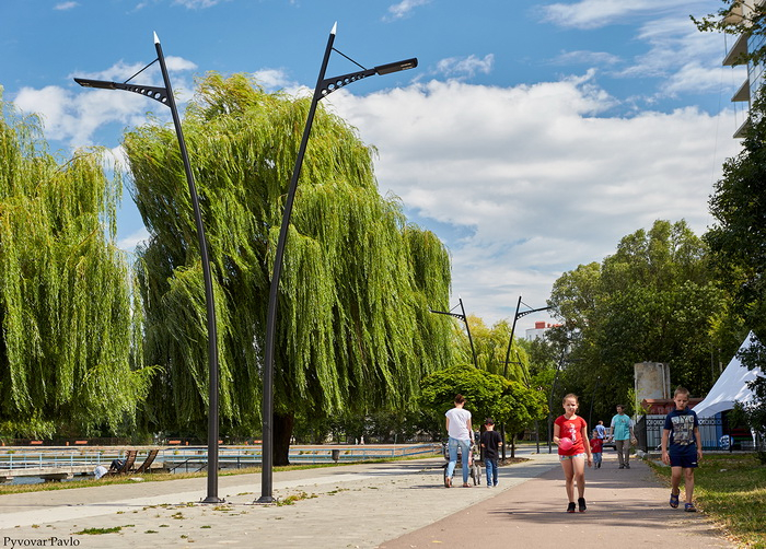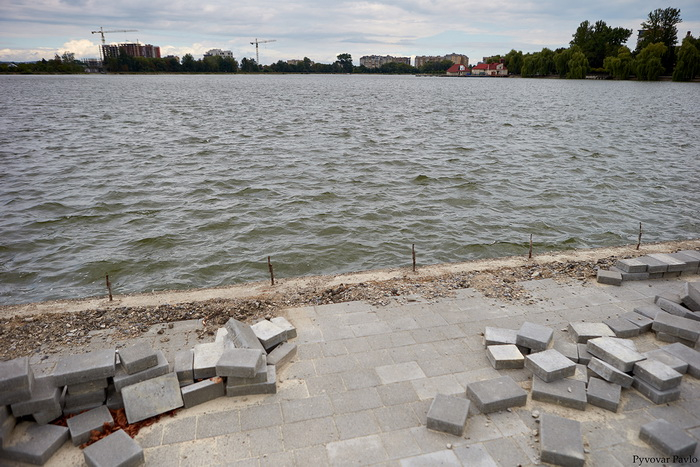 Територія міського озера змінюється до невпізнання. Зараз завершують брукування пішохідних доріжок, готова основа для велодоріжки та під поліуретан для бігових. Також частково встановили опори під вуличне освітлення, нові вуличні меблі.