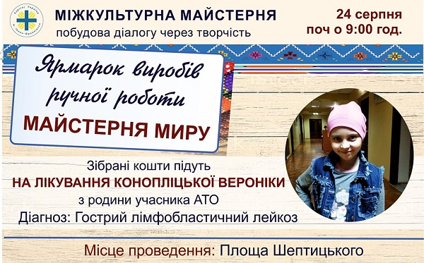 Зібрані кошти підуть на лікування Конопліцької Вероніки з родини учасника АТО.