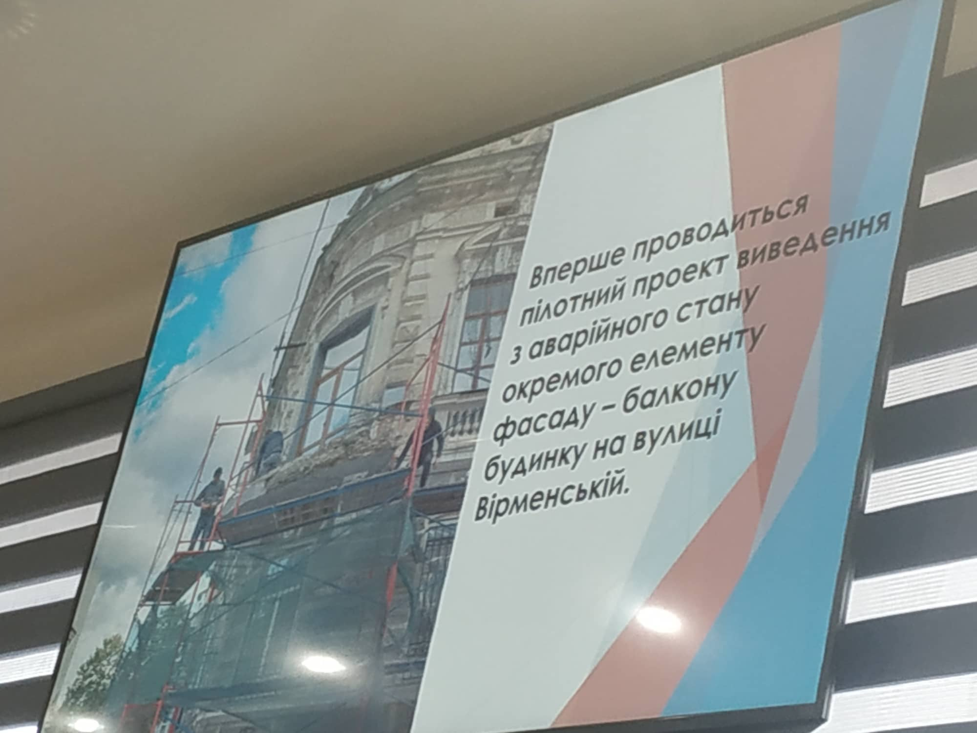 У Франківську вперше проводять пілотний проєкт виведення з аварійного стану окремого елементу фасаду.