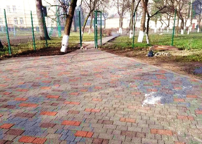 Площу перед гімнастичною школою олімпійського резерву почали вистилати кольоровою бруківкою.