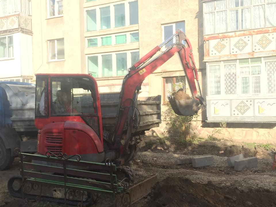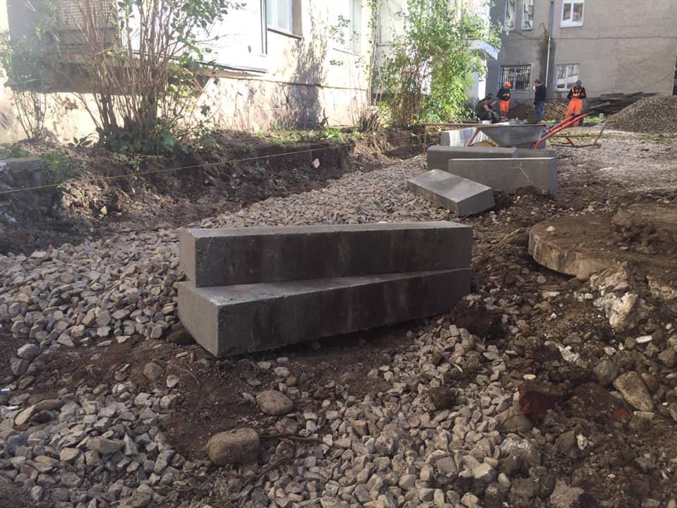 Капітальний ремонт прибудинкової території відбувається на вулиці Коновальця, 128-130.