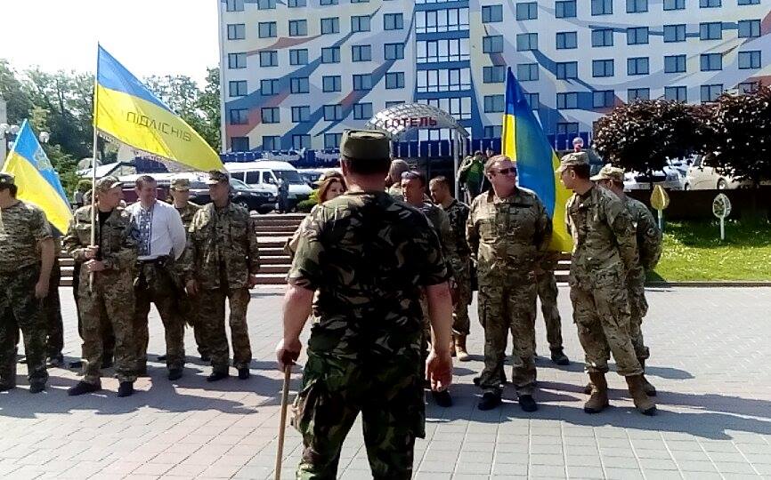 Під стінами військової прокуратури активісти скандують націоналістичні гасла та "Ганьба". Вони вимагають, щоб до них вийшов військовий прокурор.