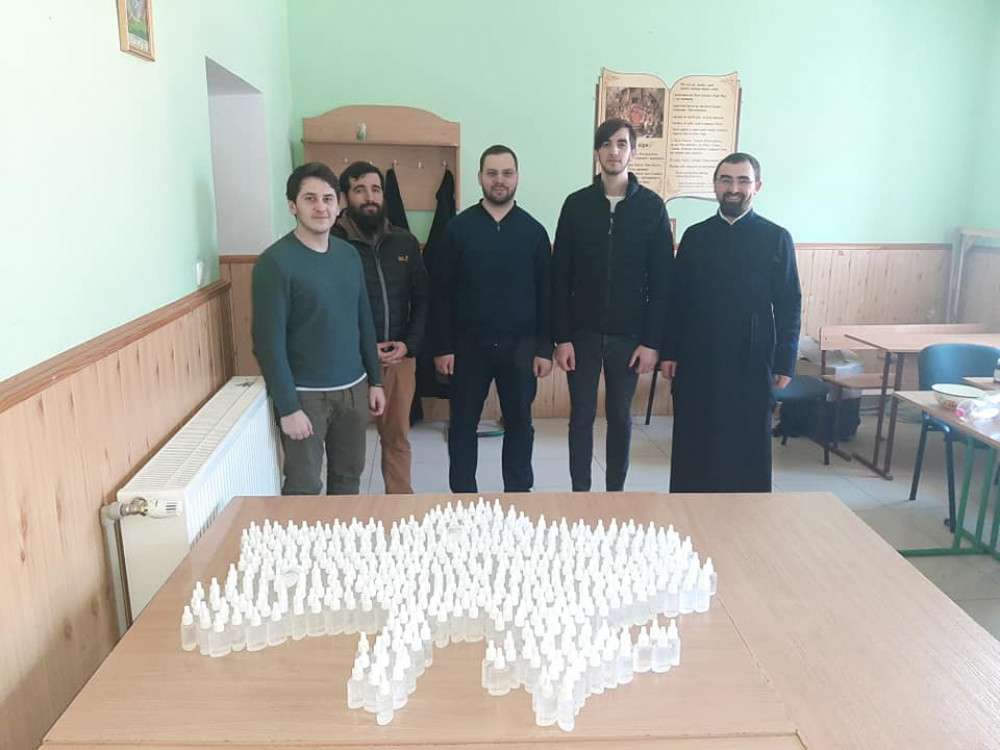 У Франківську семінаристи зробили антисептики, щоб роздати стареньким і безпритульним
