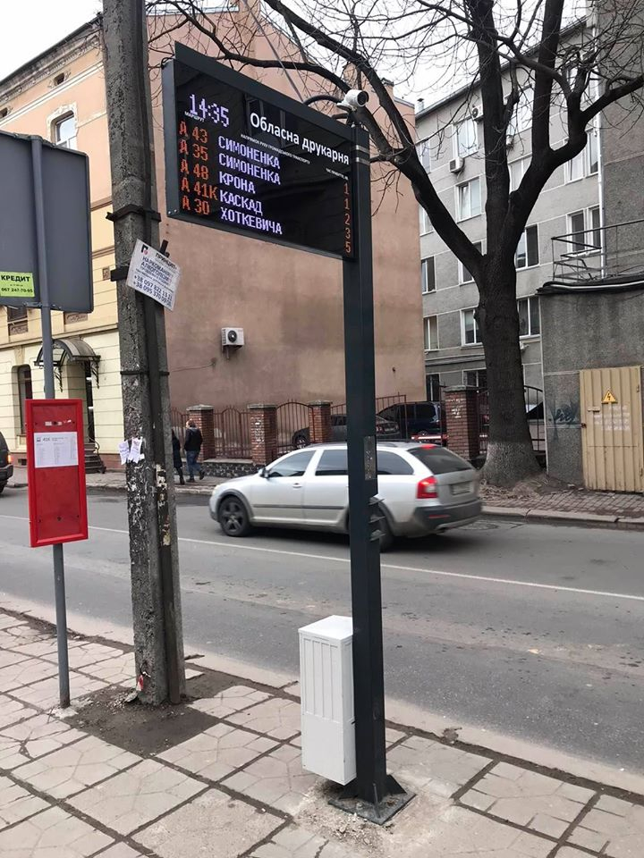 Нові табло з'явилися на зупинках "Обласна друкарня" (вул. Січових Стрільців) та "Гранд базар" (вул. Стуса). Вони показують час прибуття громадського транспорту, пише Фіртка.