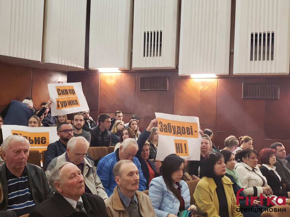 Також у сесійний зал прийшли сім'ї бійців, які загинули в АТО, і просять щоб сквер мав не одноіменну назву, а був сквером пам'яті загиблих героїв АТО.